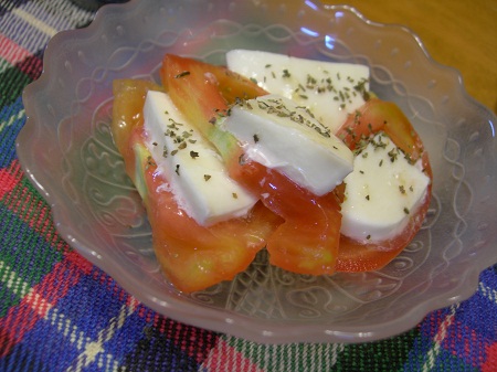 そして今夜、少し前にモッツアレラチーズが美味しいと言っていたのでそれをトマトにのせて