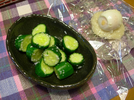 キュウリの水分で水っぽいので、もう少し味が濃くてもいいかな。