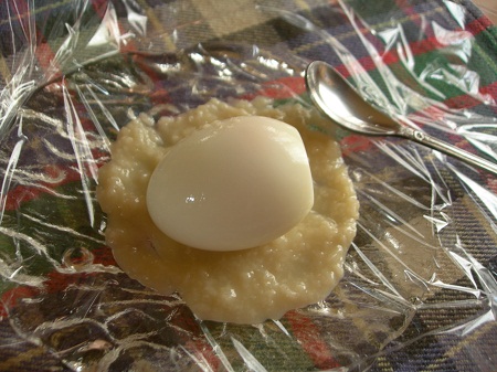 次はゆでたまごをラップに薄く敷いた塩麹の上に乗せて・・・