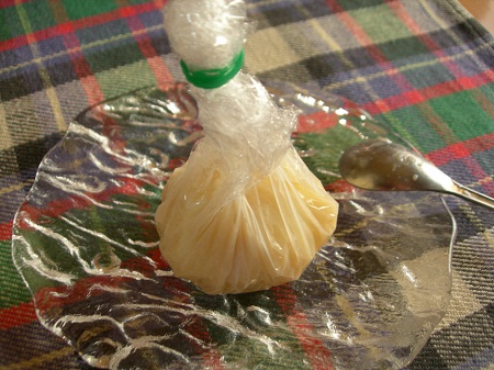 空気は抜いてゆでたまごがすっぽりかぶるように包みます。