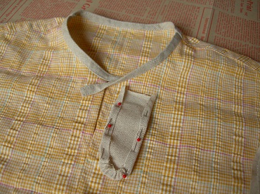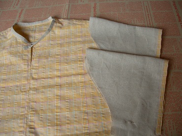 襟は付けずに袖の部分は切り替えのデザインにして、合う生地を買い足しました。