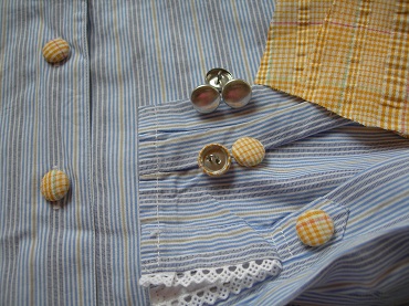 ボタンはやっぱりくるみボタンにしてみましたが、同じ黄色が入った先ほどの残り布で。