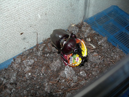昆虫ゼリーにかぶりつくカブ君(カブ・カブなんちって)。
