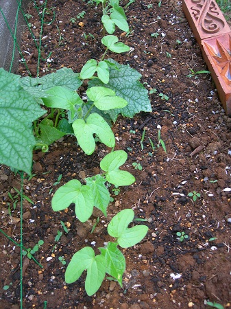 朝顔の花が咲き始めたら、とっても素敵なグリーンカーテンになると思うんだけどな。