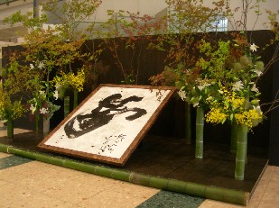 下いちばん左はオープニングイベントで行われた書とお花によるコラボレーション。