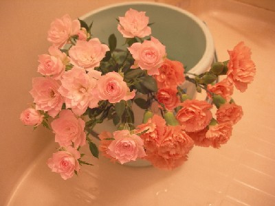とても可愛いミニバラとスプレーカーネーションが売っていました。