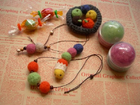 フエルトボールのアクセサリーやマスコットのキットもご用意します。