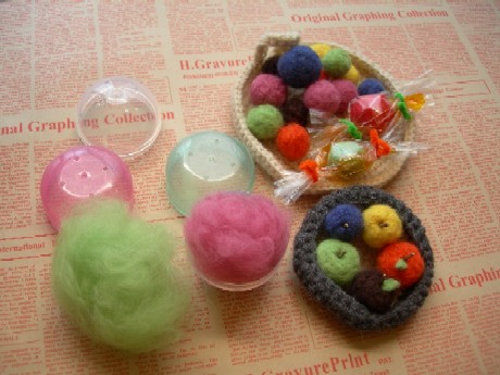 お子さん向けフエルトボールつくりは、フエルト原毛が入ったガチャポンを