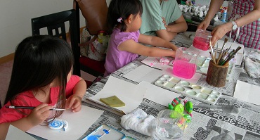 販売のパン。大盛況でした。 カタツムリのキッズペインティングは楽しんでいただけたかな・・・