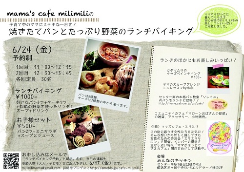 それから次回のミリミリイベント ★焼きたてパンとたっぷり野菜のランチバイキング★