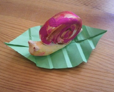 紙粘土でできたかたつむりに、思い思いに色を