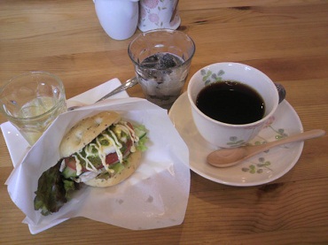 今回はケーキプレートではなく あだちパン のバジルチキンサンドいただきました。