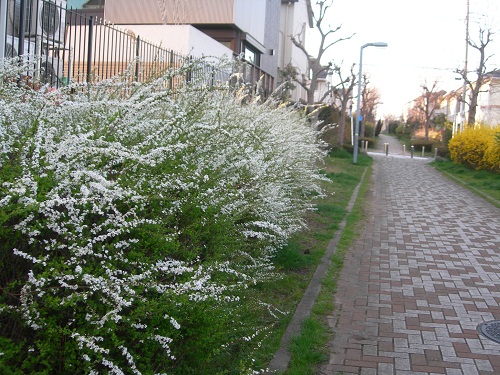 少し歩いた別の遊歩道には雪柳が満開。