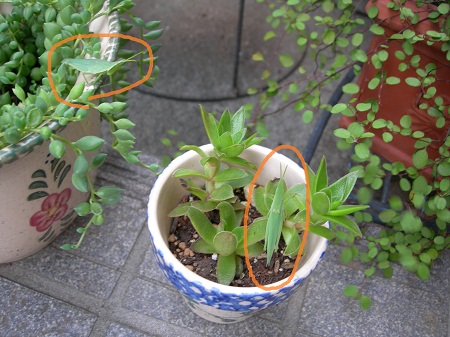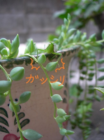 コスモスの写真を撮ったあと、ふとグリーンネックレスの鉢植えを見ましたら・・・