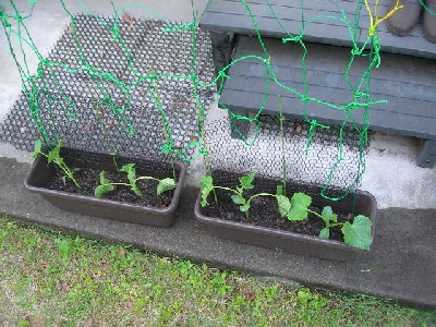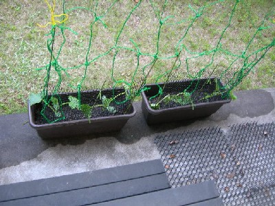 それで早速プランターに2つずつ、ネットもねちこち自分で何とか作りました。