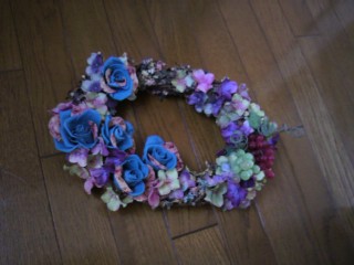 (プリザーブドフラワーは布と併せてメリア仕立てに←得意)