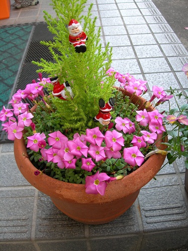 これはゴールドクレストの根元に寄せ植えして、クリスマス時期に