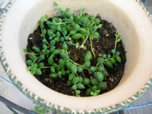 去年の秋に買ってきた小さな小さなグリーンネックレスの鉢植え。