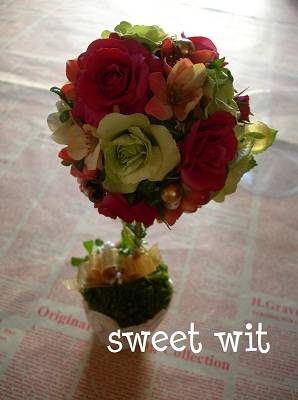 ■ 小さな植木鉢に枝をさして、まあるいボールにバラや木の実などを