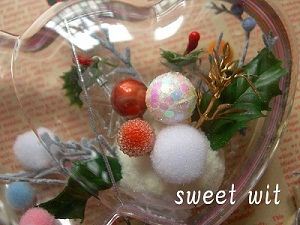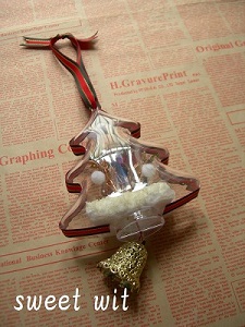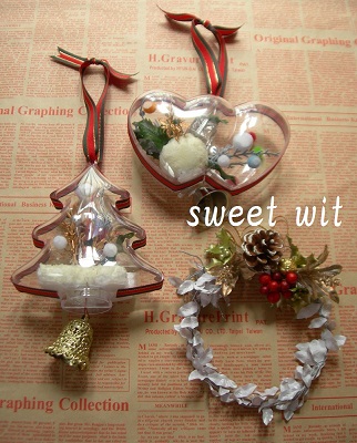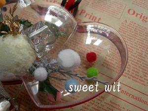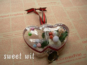 ハート型とツリー型のクリアケースの中に、ジオラマ風に