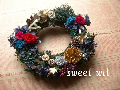 ベースに取り付けて、バラやアジサイ、松ぼっくりなどの