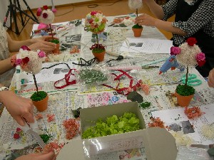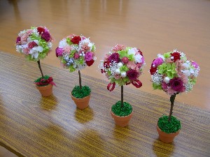 トピアリーをぜひ!ということで、ピンク系にまとめた花材で
