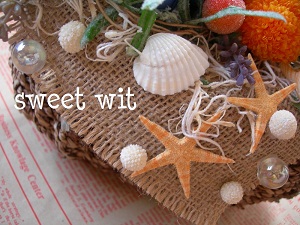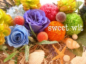 ヒトデに貝がら、涼しげな副花材にビー玉も使います。