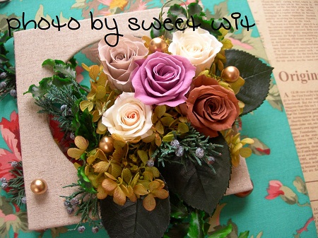 「アートフラワー」 でつくったファブリックボードアレンジを、近々に ネットショップ に