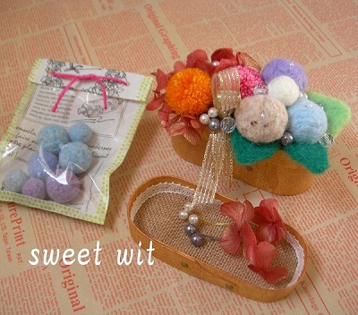 プリザーブドフラワーのピンポンマムと、フエルト羊毛をちくちくしてつくったフエルトボールを