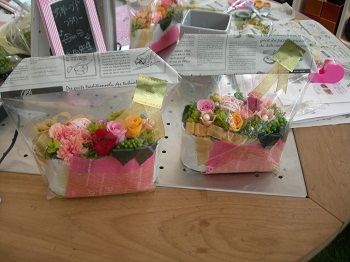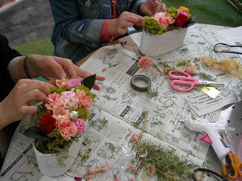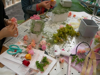 手作業が終わってアレンジを楽しんでもらっています・・・
